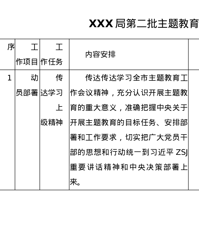 XXX局第二批主题教育工作推进清单(特色社会主义思想)