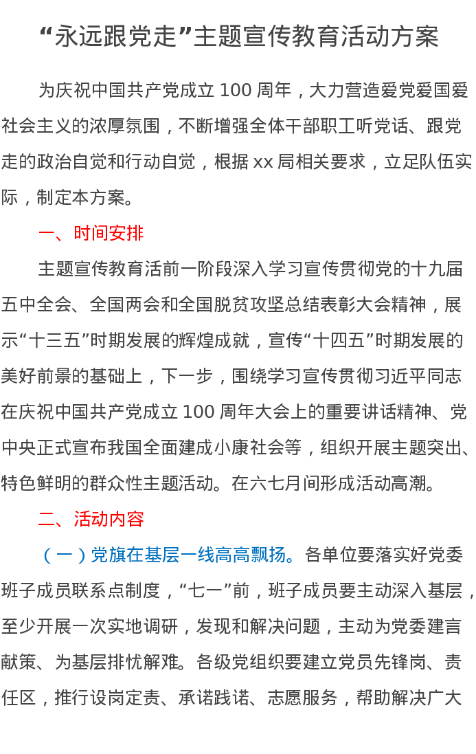 “永远跟党走”主题宣传教育活动方案