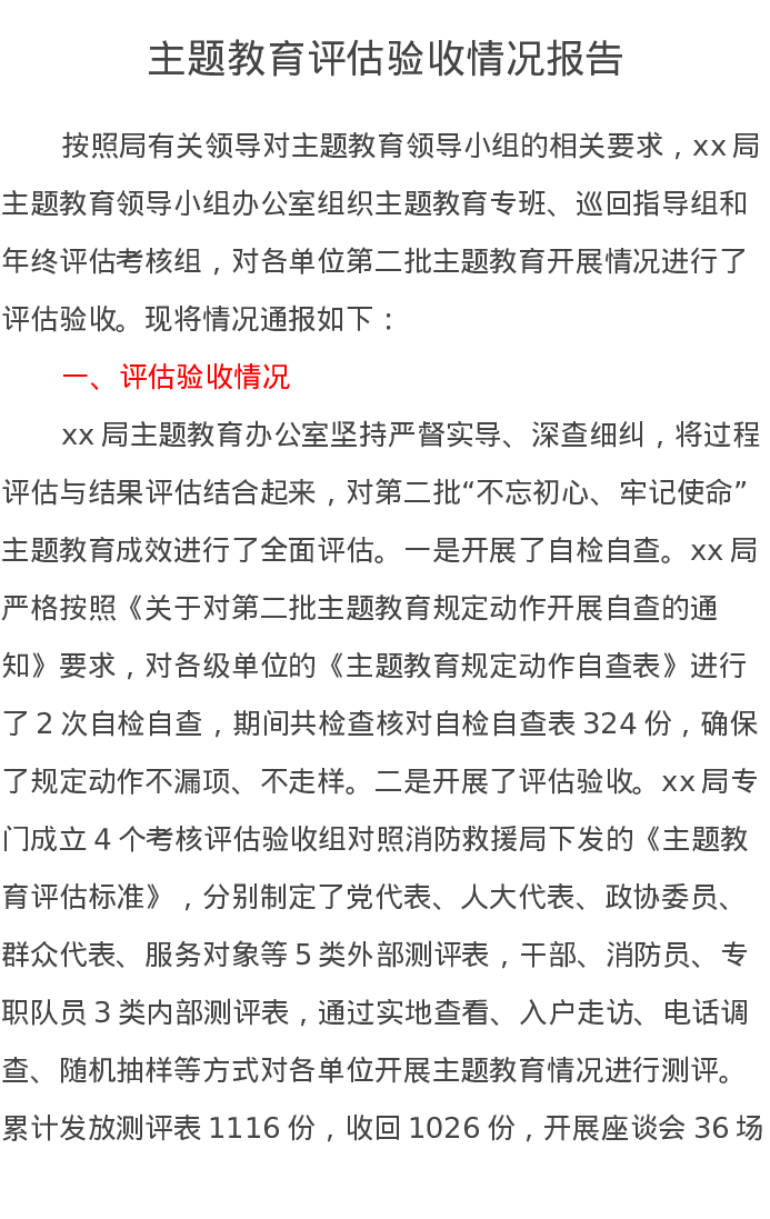 主题教育评估验收情况报告(特色社会主义思想)