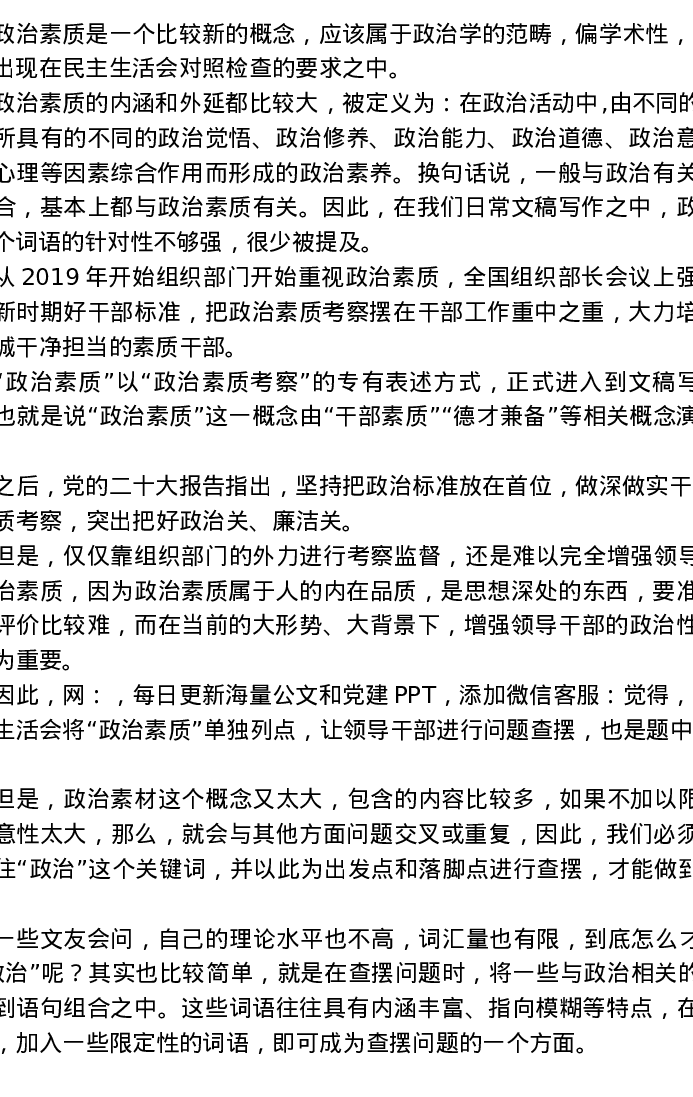 第二方面:2023年主题教育专题民主生活会“政治素质”方面问题起草指南、实例和素材93条(特色社会主义思想)