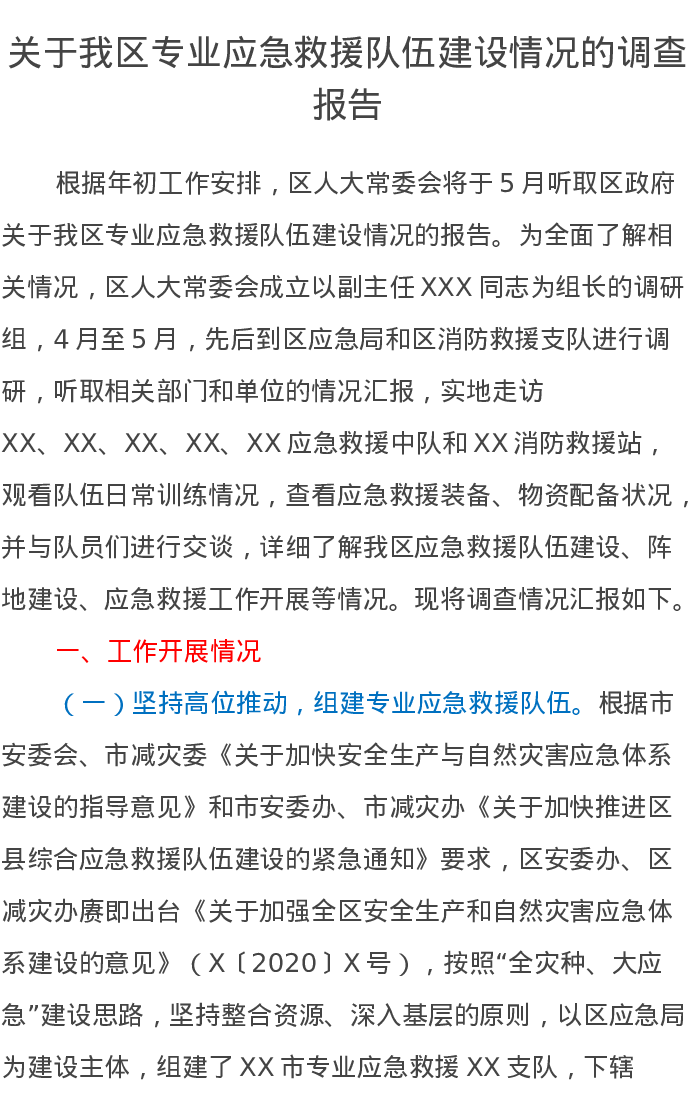 关于我区专业应急救援队伍建设情况的调查报告