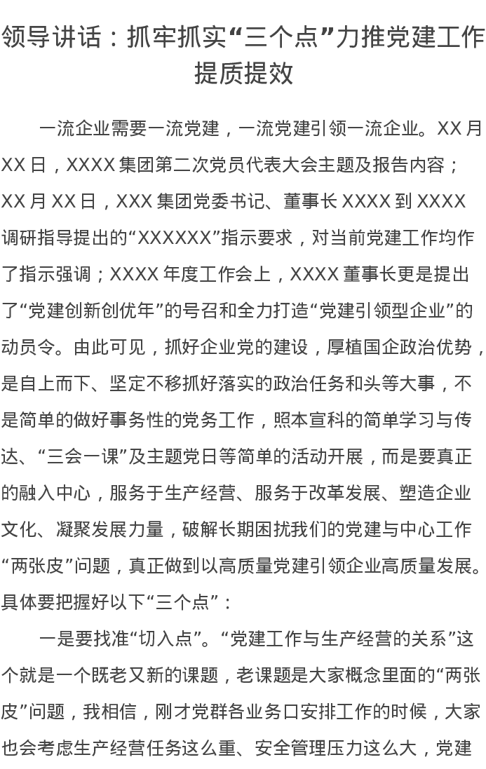 领导讲话:抓牢抓实“三个点”力推党建工作提质提效