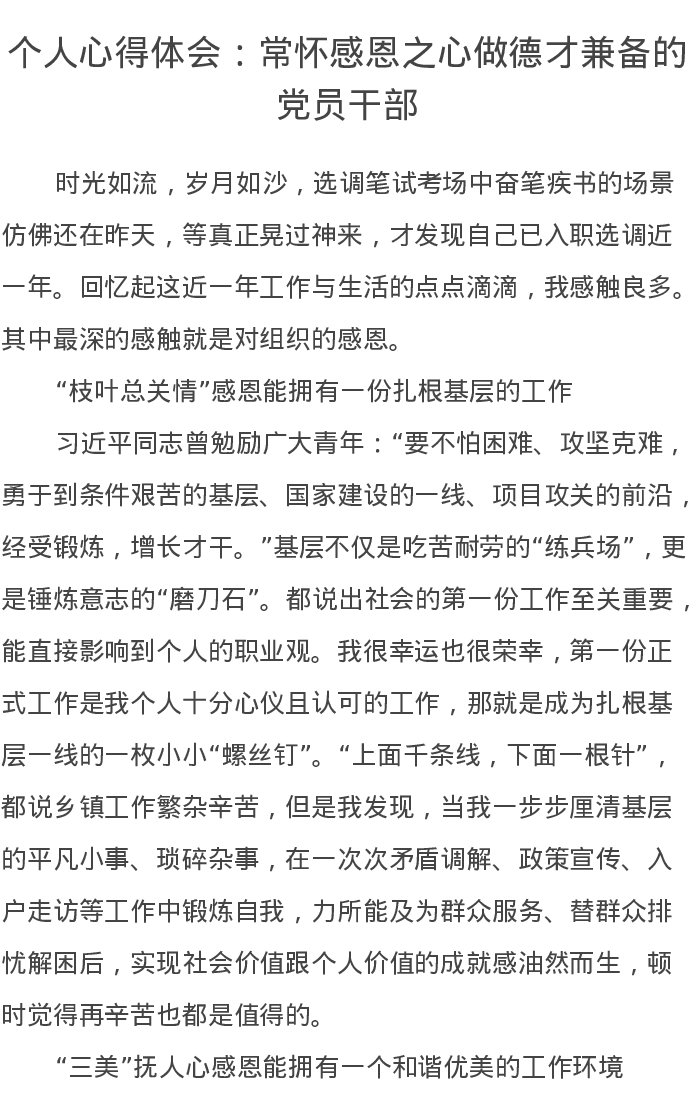 个人心得体会:常怀感恩之心做德才兼备的党员干部