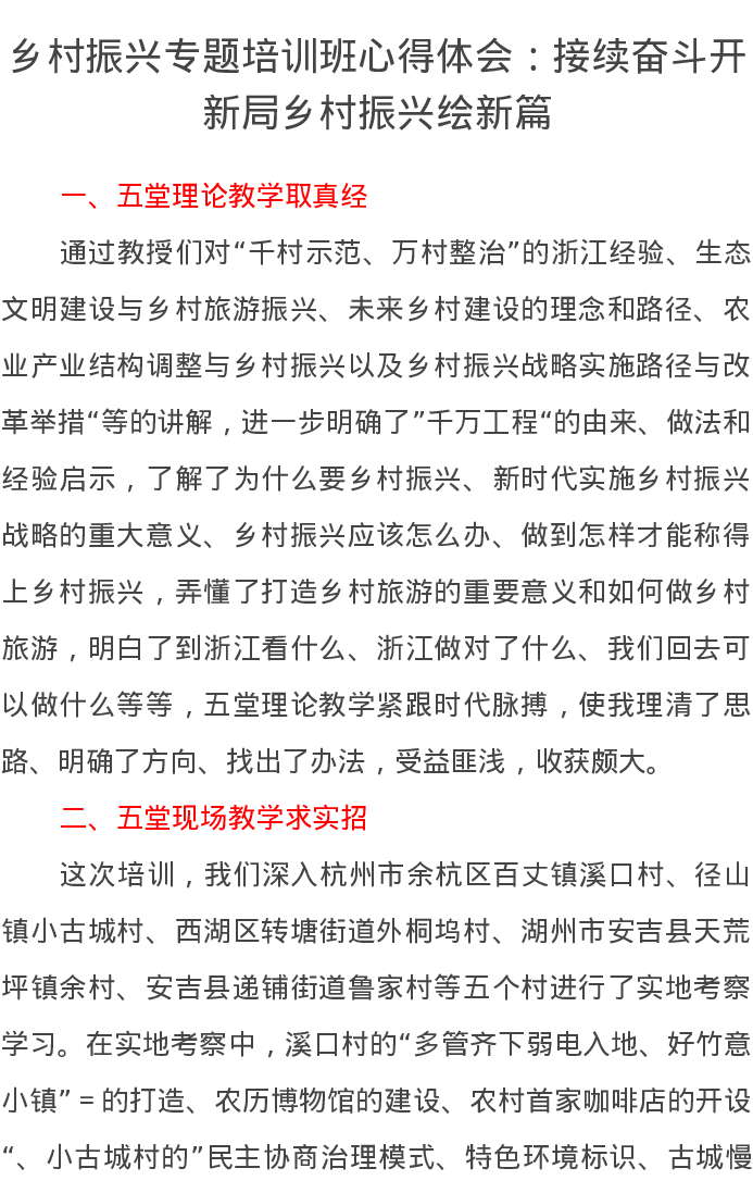 乡村振兴专题培训班心得体会:接续奋斗开新局乡村振兴绘新篇