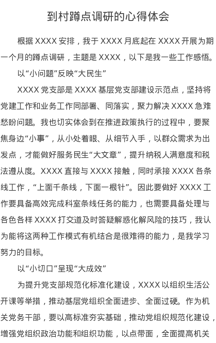 到村蹲点调研的心得体会
