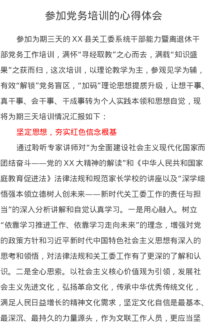 参加党务培训的心得体会