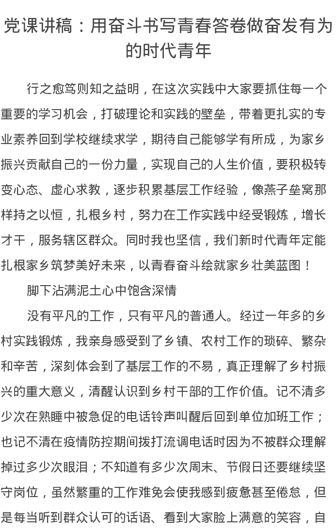 党课讲稿:用奋斗书写青春答卷做奋发有为的时代青年
