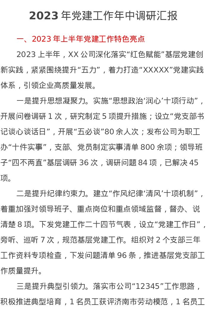汇编:2023年国有企业党建年中工作调研汇报2篇