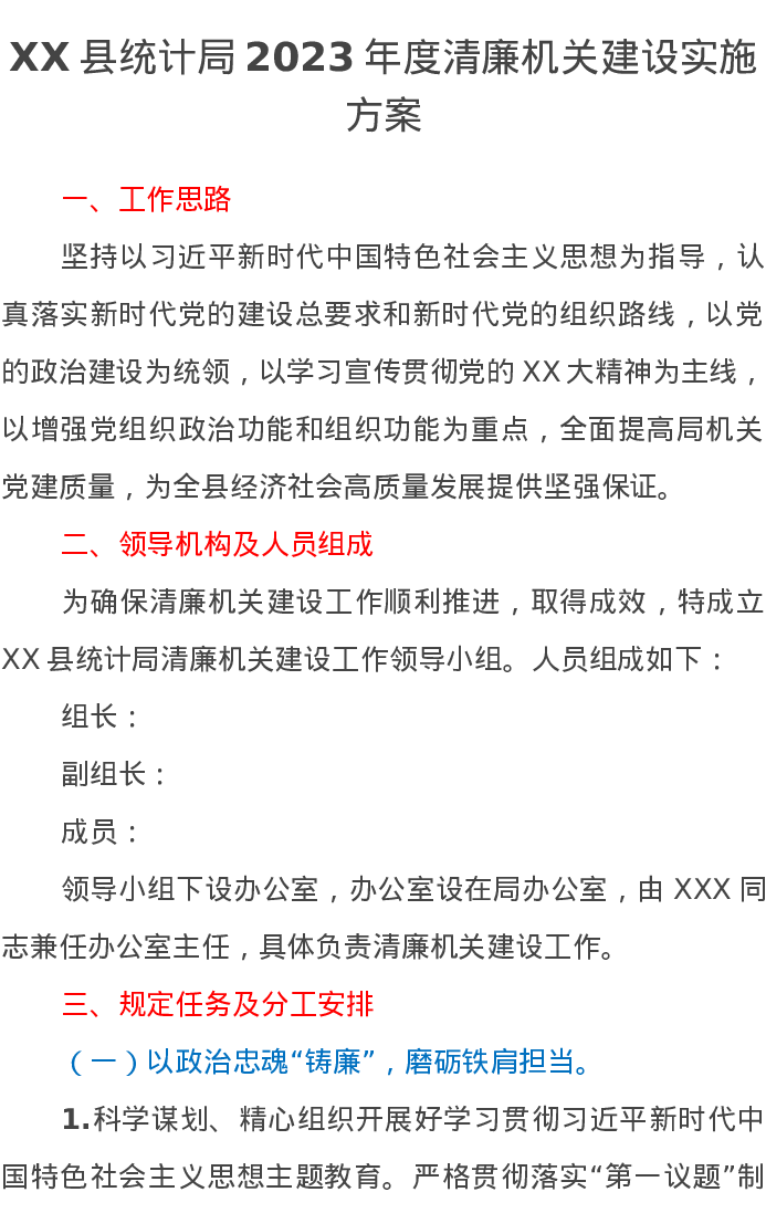 XX县统计局2023年度清廉机关建设实施方案