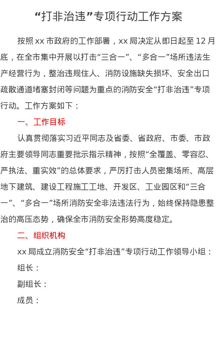 “打非治违”专项行动工作方案
