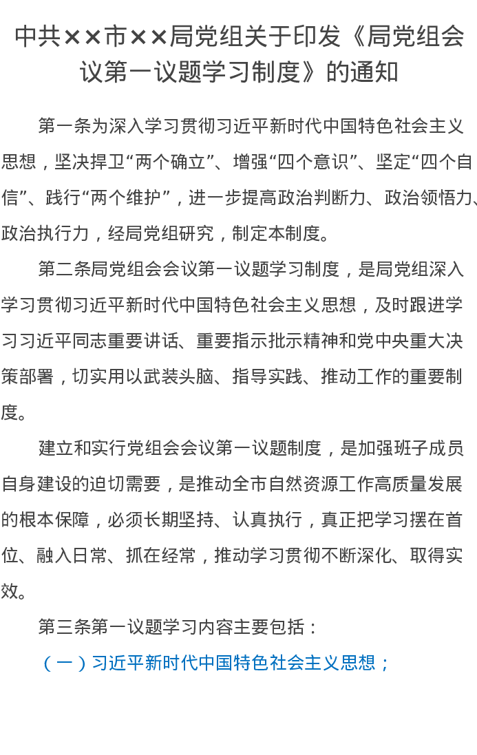 中共××市××局党组关于印发《局党组会议第一议题学习制度》的通知