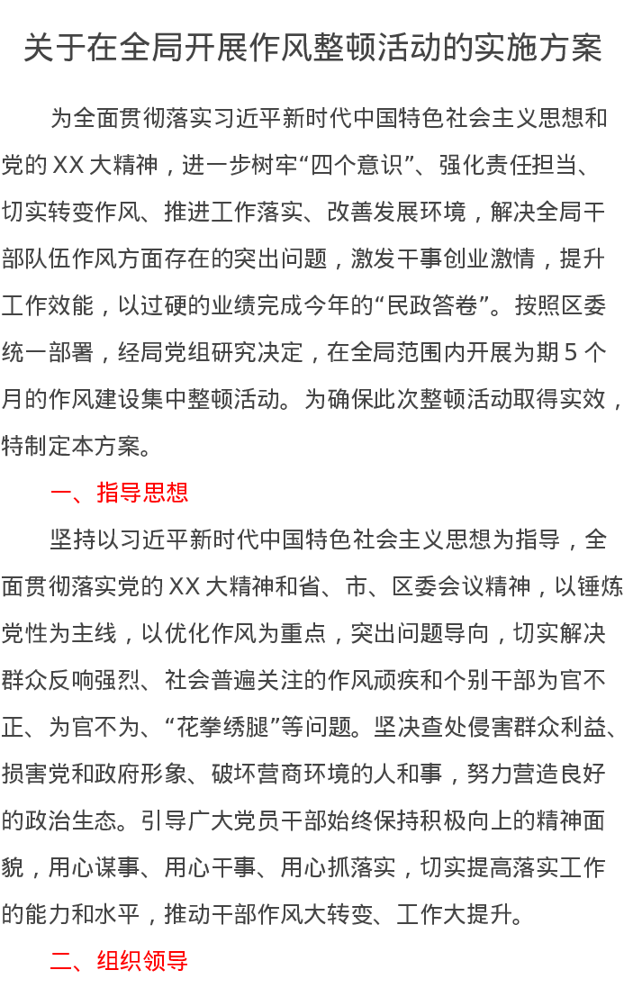 关于在全局开展作风整顿活动的实施方案