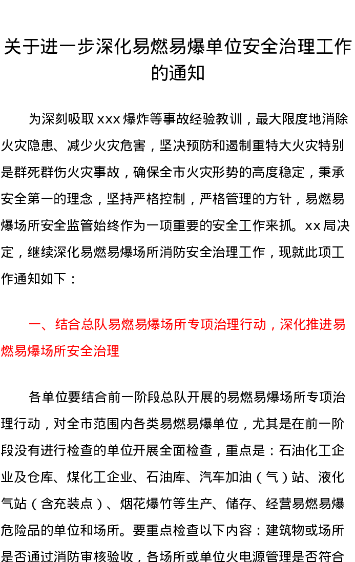 关于进一步深化易燃易爆单位安全治理工作的通知