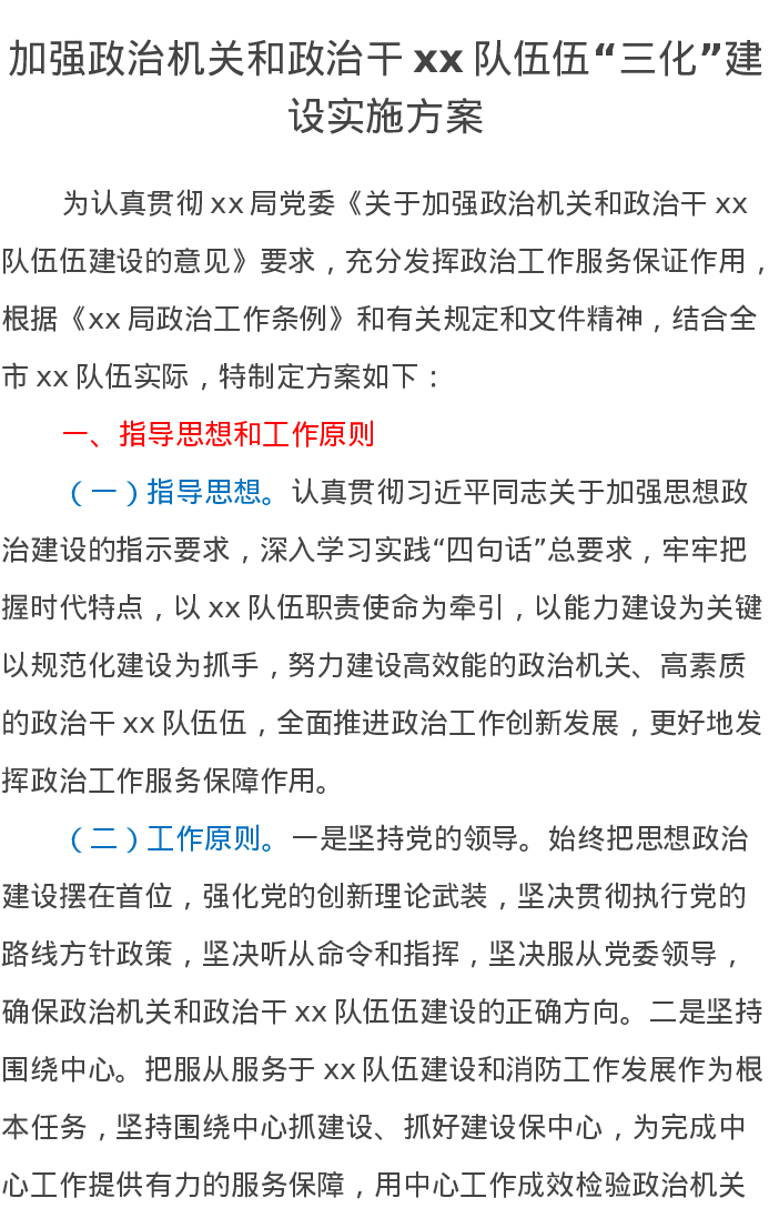 加强政治机关和政治干xx队伍伍“三化”建设实施方案