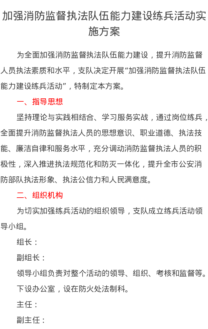 加强消防监督执法队伍能力建设练兵活动实施方案