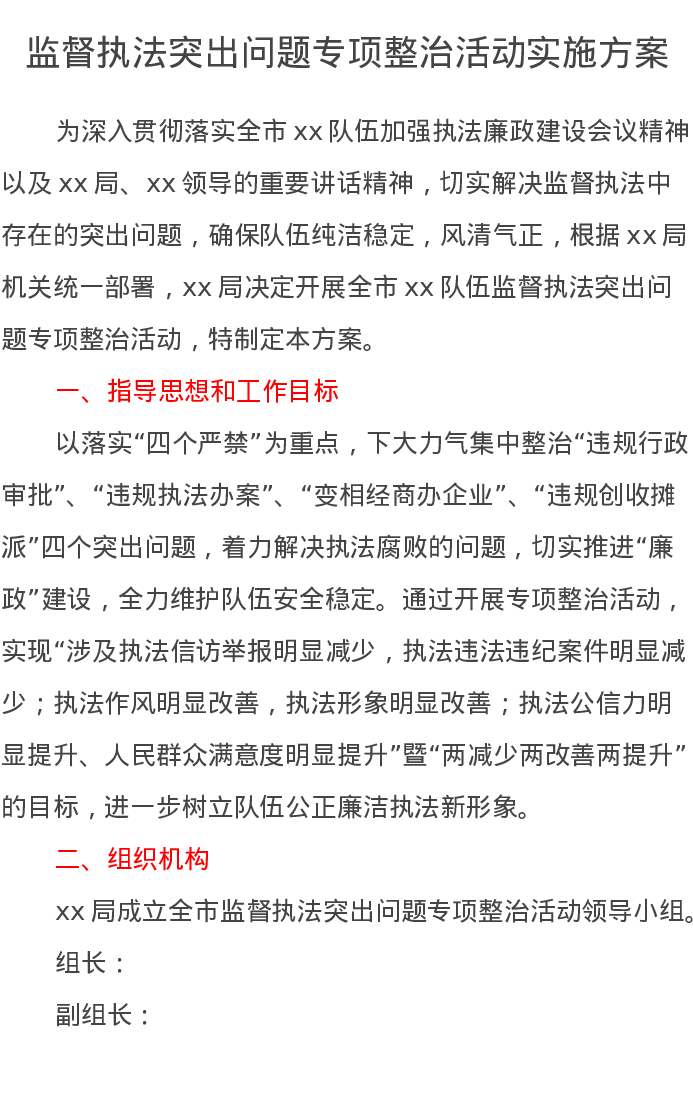 监督执法突出问题专项整治活动实施方案