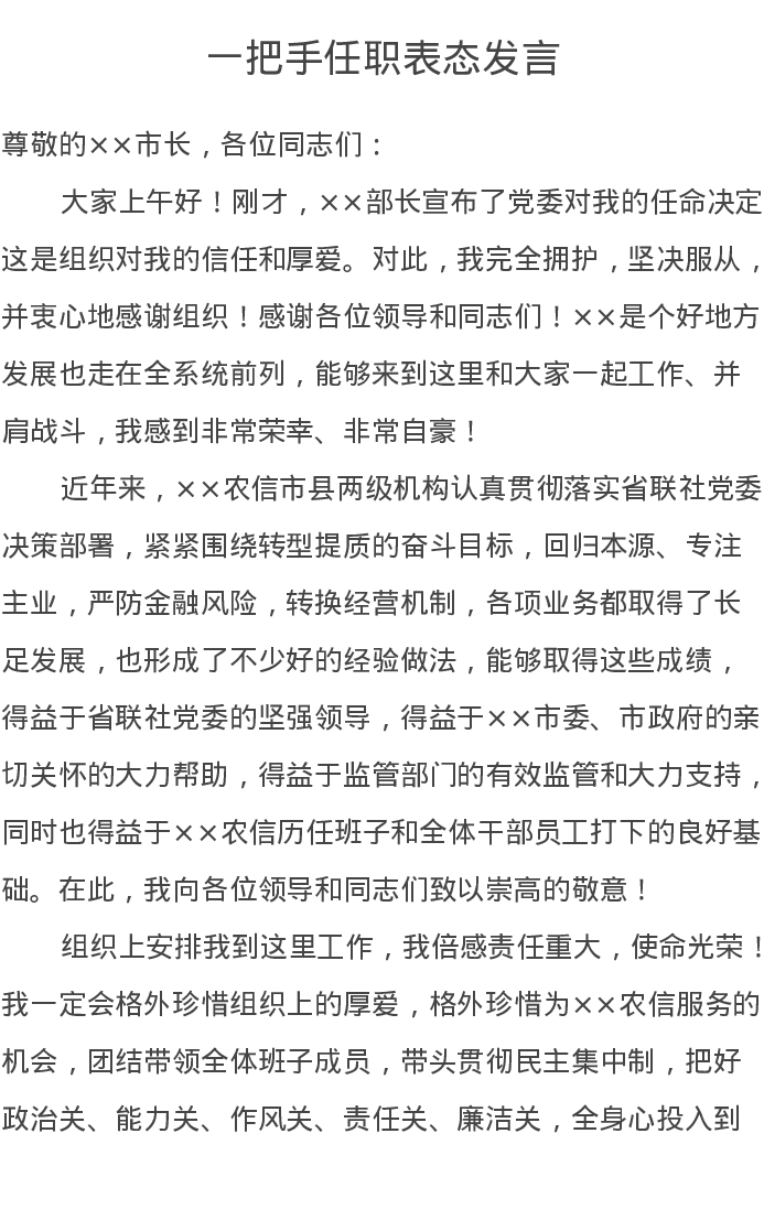 一把手任职表态发言