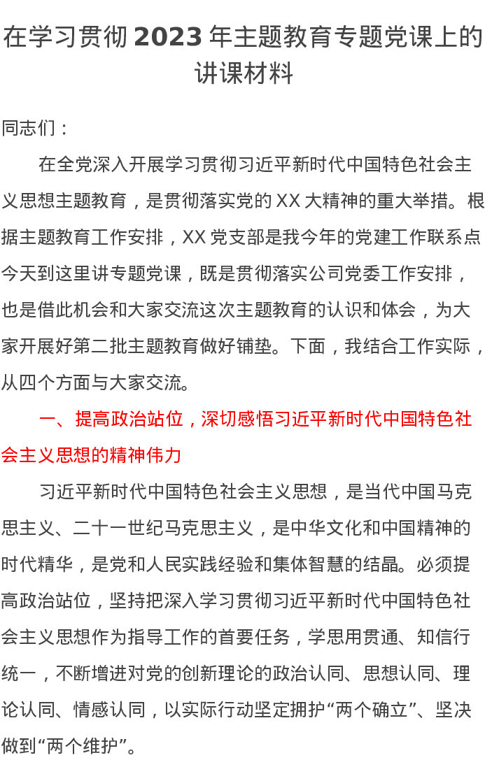 主题教育党课讲稿:感悟思想伟力踔厉奋发前行在高质量发展中勇攀高峰(特色社会主义思想)