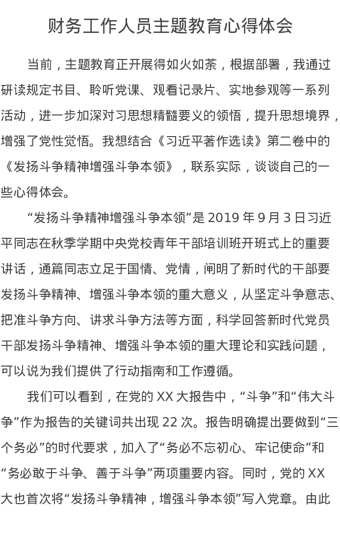 财务工作人员主题教育心得体会(特色社会主义思想)