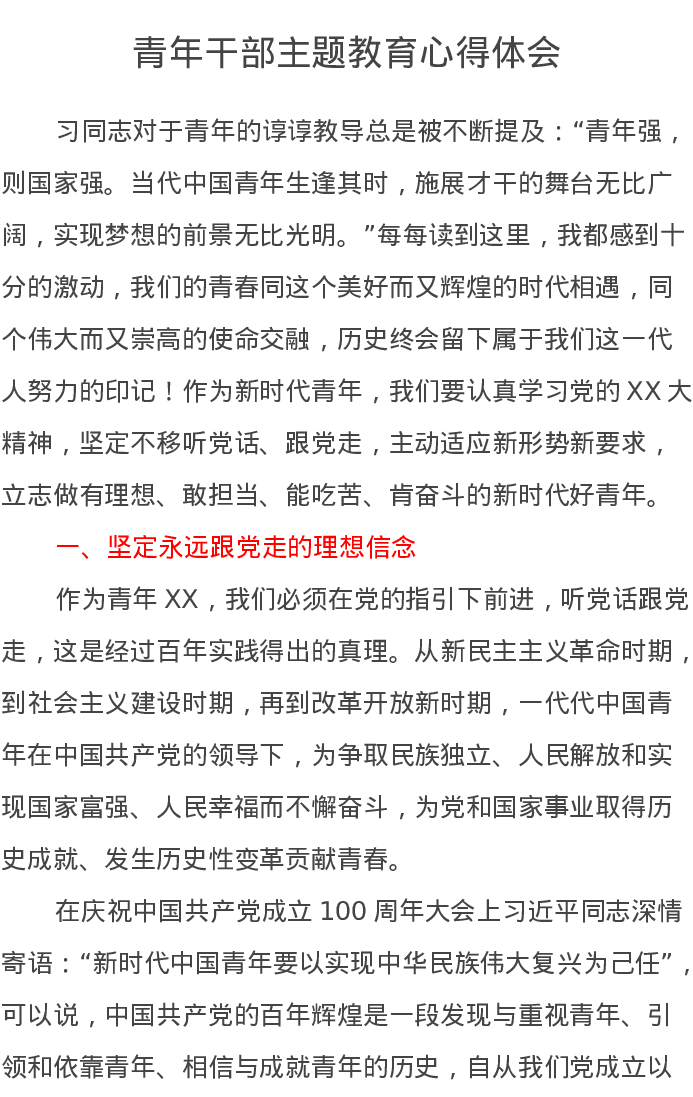 青年干部主题教育心得体会(特色社会主义思想)