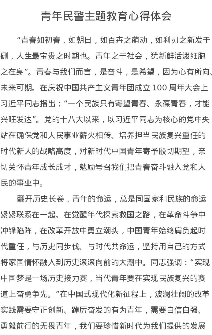 青年民警主题教育心得体会(特色社会主义思想)