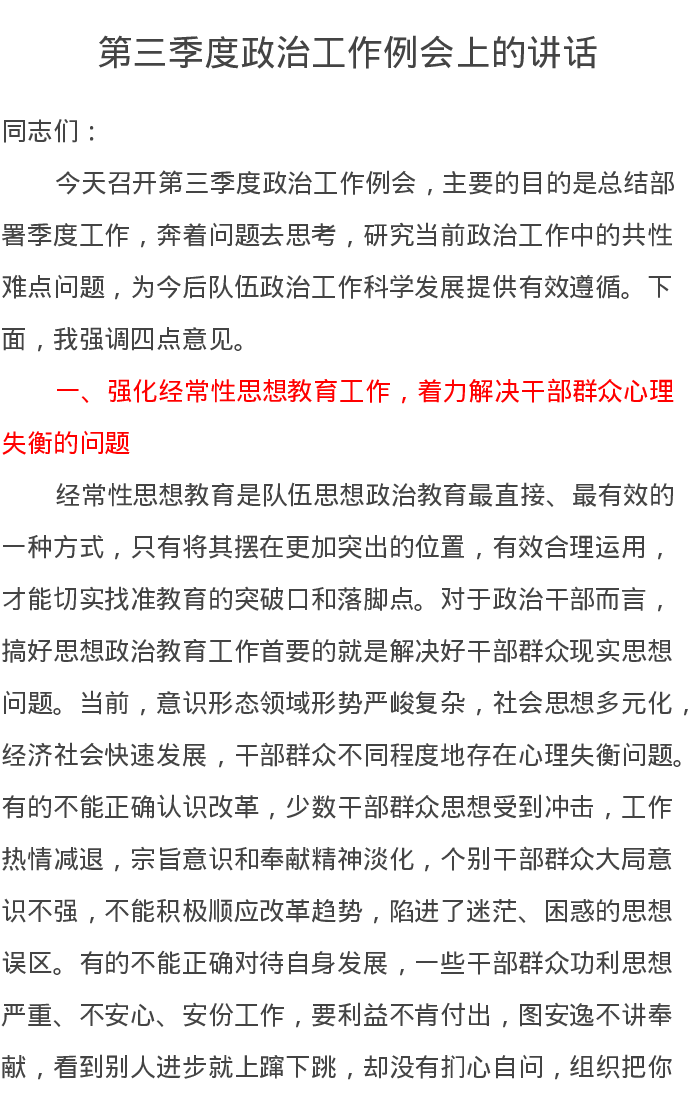 第三季度政治工作例会上的讲话
