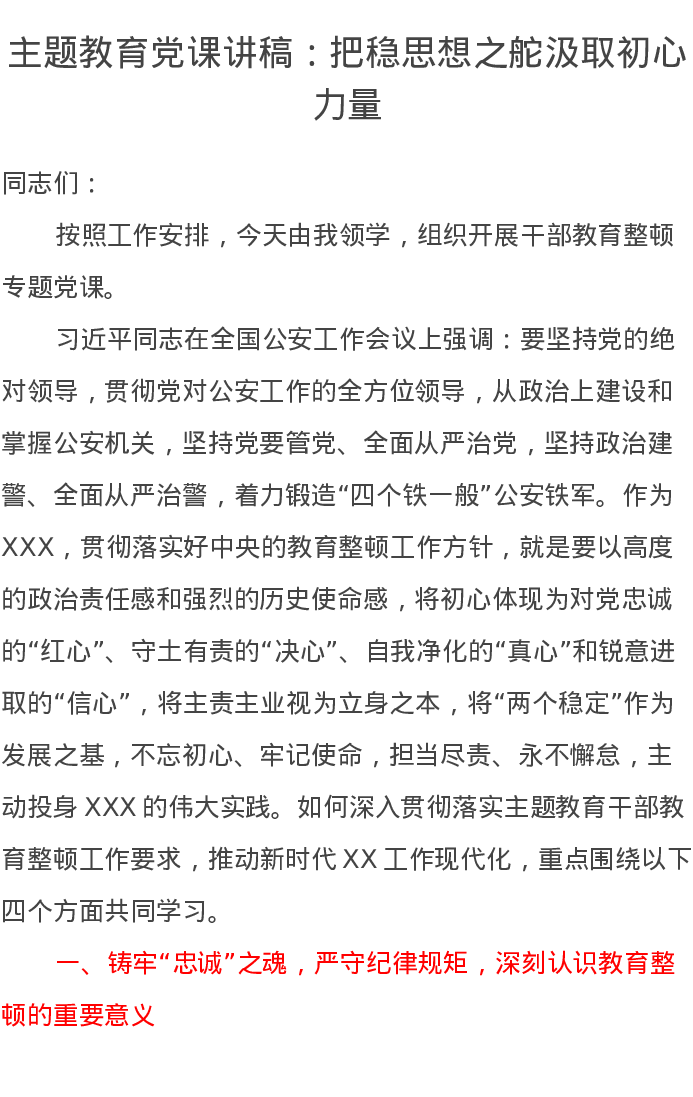 主题教育党课讲稿:把稳思想之舵汲取初心力量