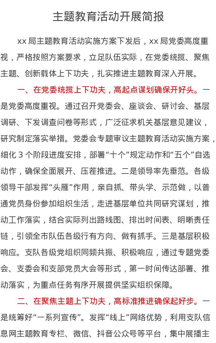 主题教育活动开展简报(特色社会主义思想)