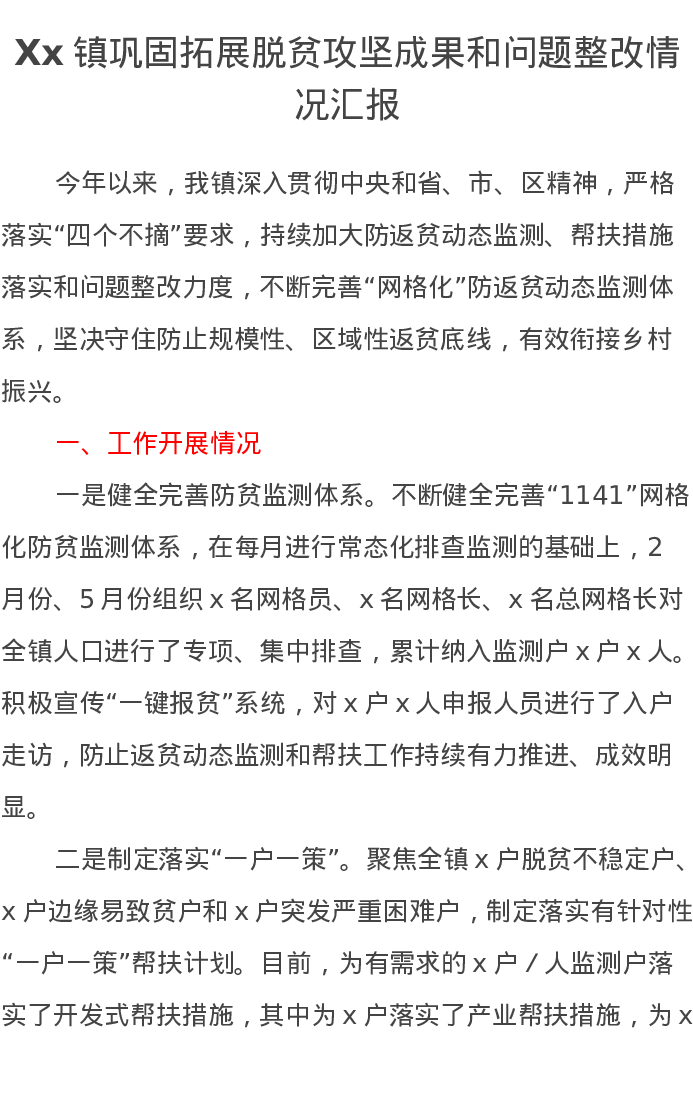 Xx镇巩固拓展脱贫攻坚成果和问题整改情况汇报