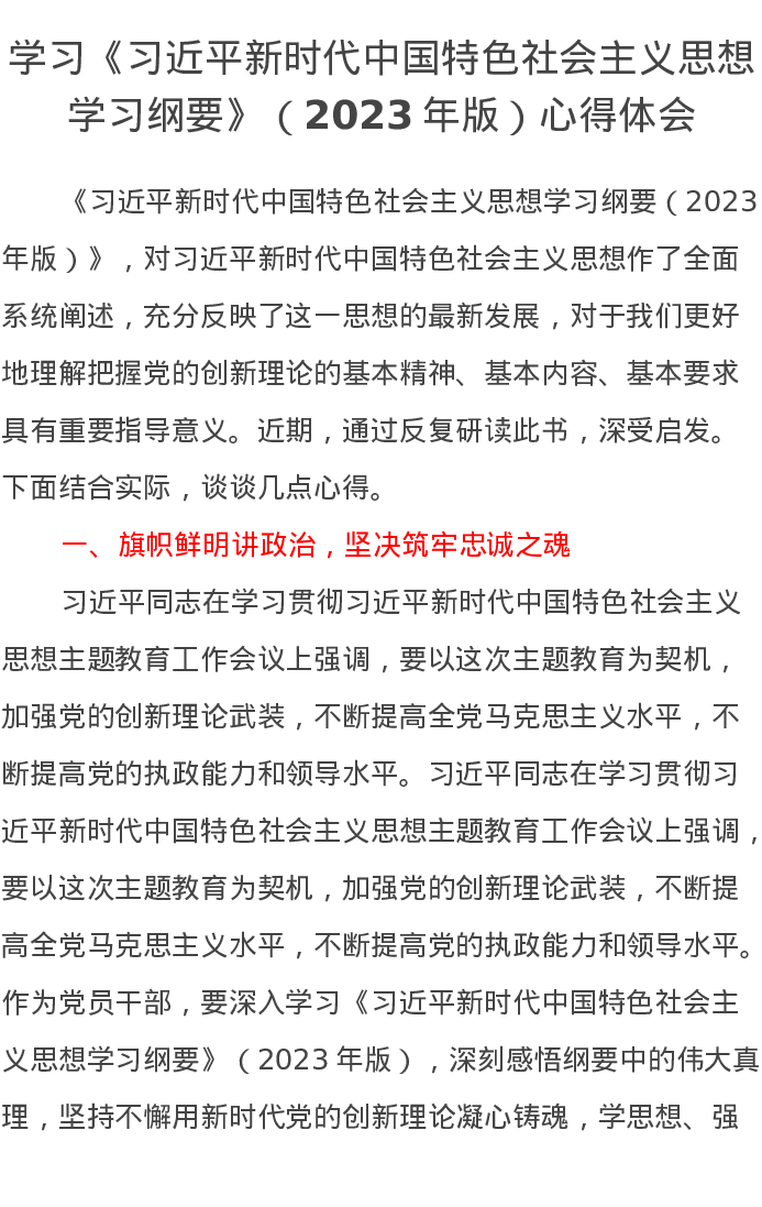 学习《习近平新时代中国特色社会主义思想学习纲要》(2023年版)心得体会
