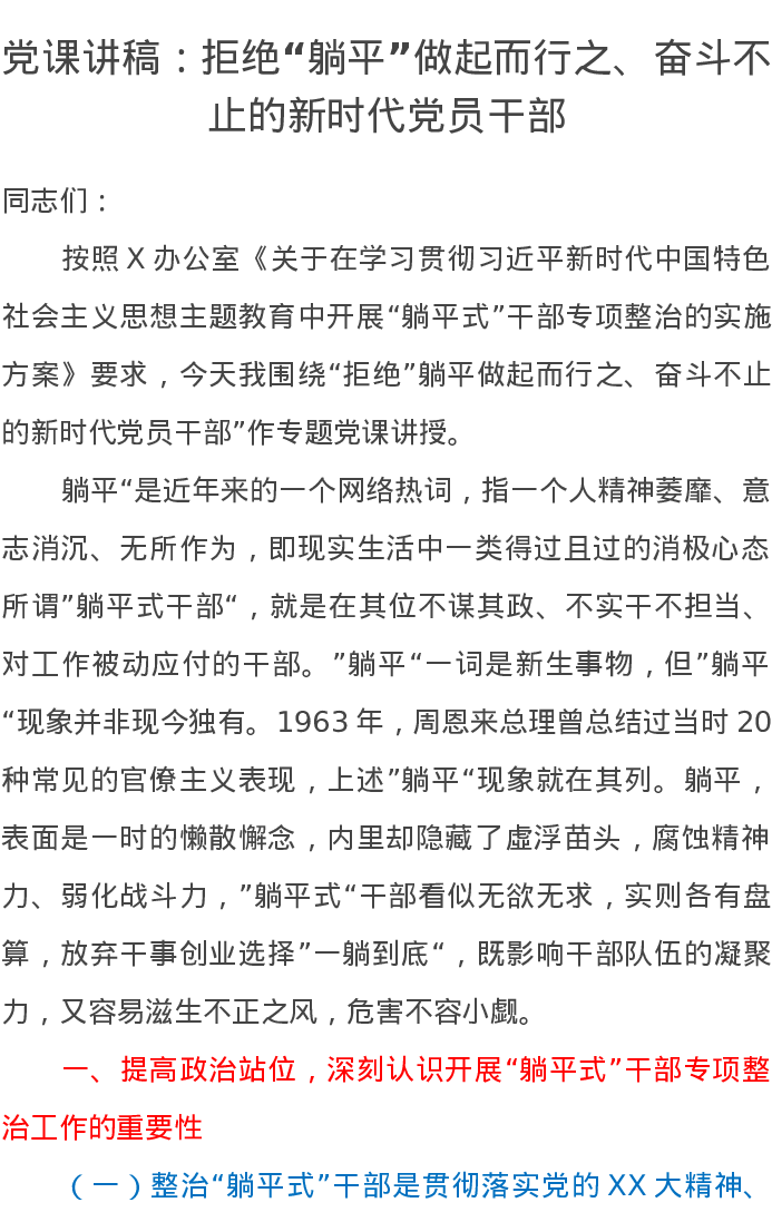 党课讲稿:拒绝“躺平”做起而行之、奋斗不止的新时代党员干部