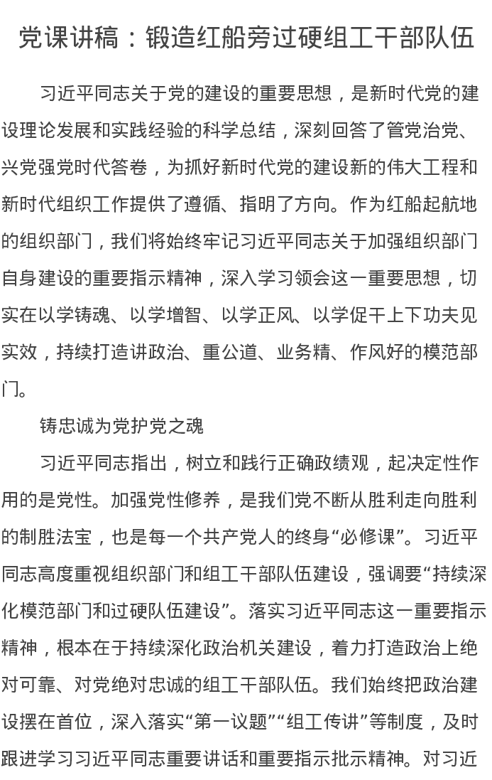 党课讲稿:锻造红船旁过硬组工干部队伍