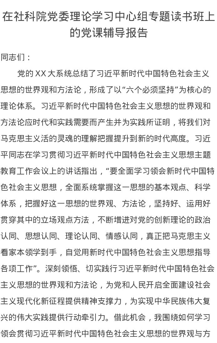 在社科院党委理论学习中心组专题读书班上的党课辅导报告