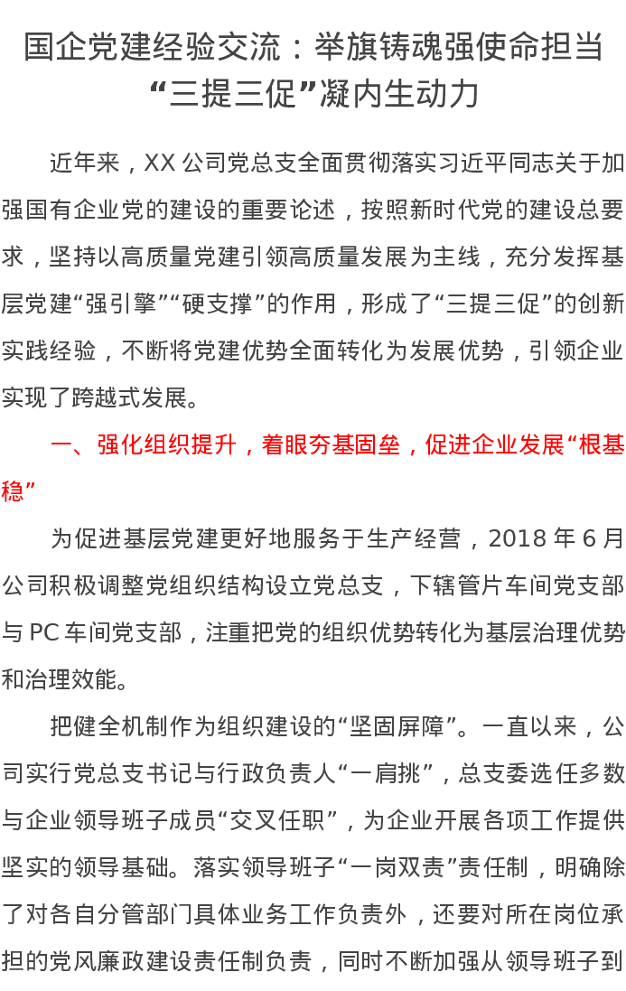 国企党建经验交流:举旗铸魂强使命担当“三提三促”凝内生动力