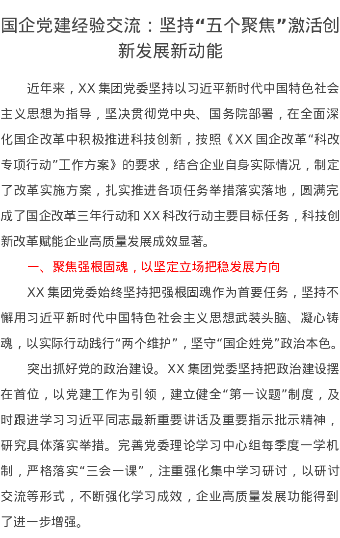 国企党建经验交流:坚持“五个聚焦”激活创新发展新动能