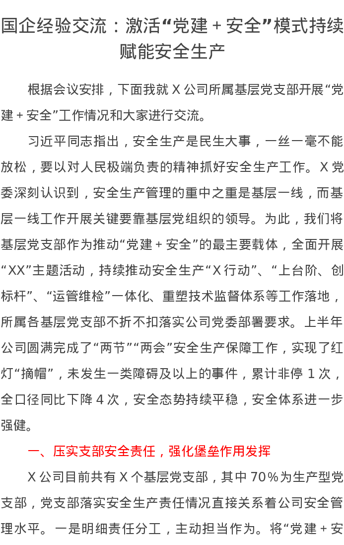 国企经验交流:激活“党建+安全”模式持续赋能安全生产