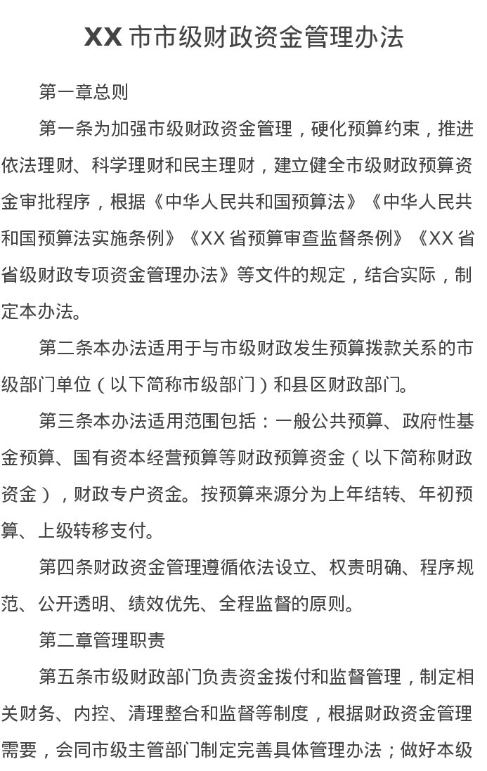 XX市市级财政资金管理办法