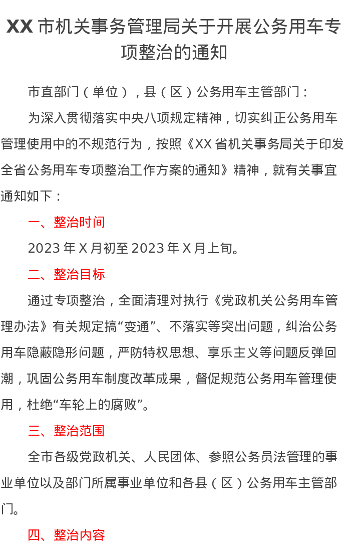 XX市机关事务管理局关于开展公务用车专项整治的通知