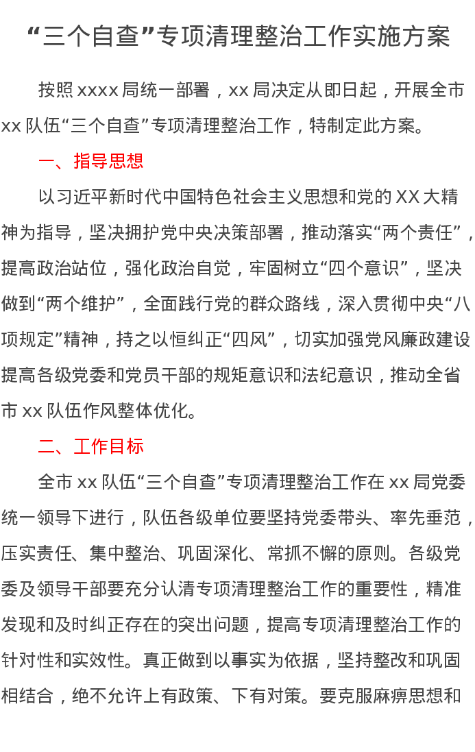“三个自查”专项清理整治工作实施方案