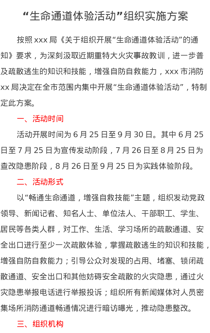 “生命通道体验活动”组织实施方案