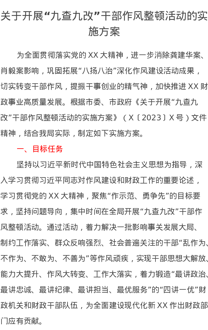 关于开展“九查九改”干部作风整顿活动的实施方案