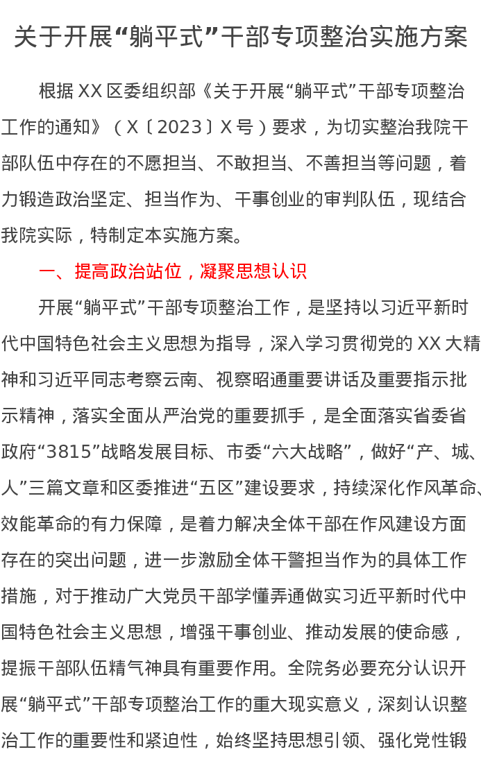 关于开展“躺平式”干部专项整治实施方案