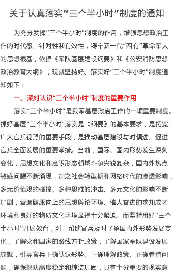 关于认真落实“三个半小时”制度的通知