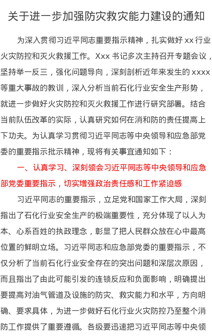 关于进一步加强防灾救灾能力建设的通知
