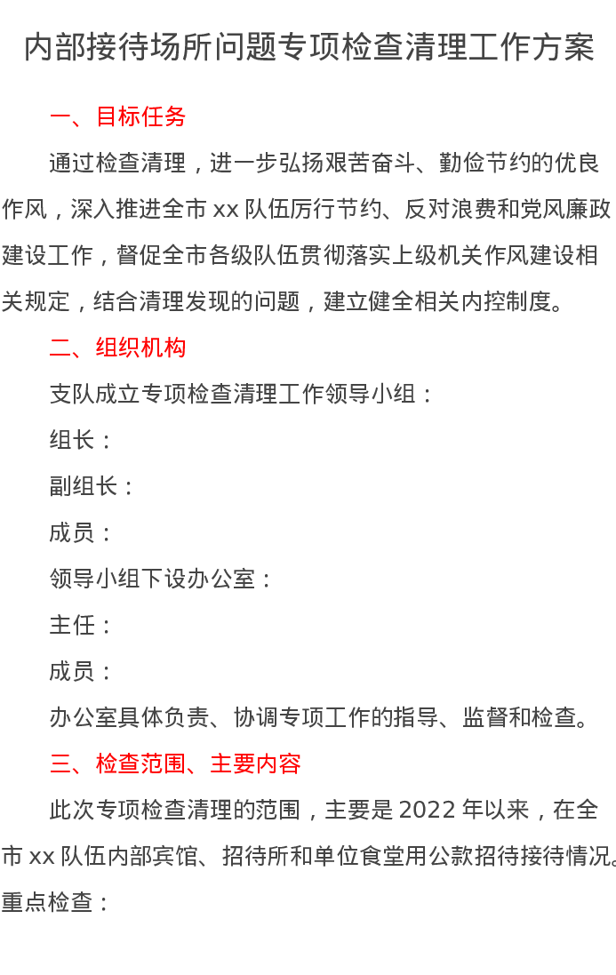 内部接待场所问题专项检查清理工作方案