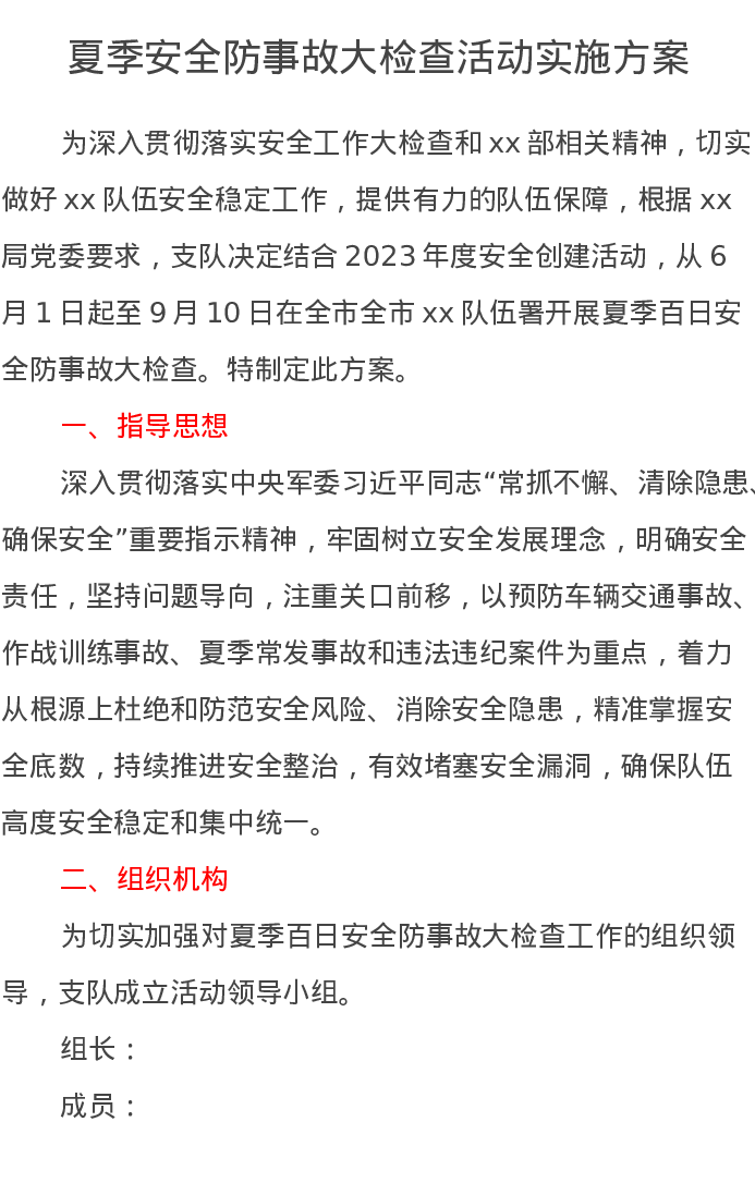 夏季安全防事故大检查活动实施方案