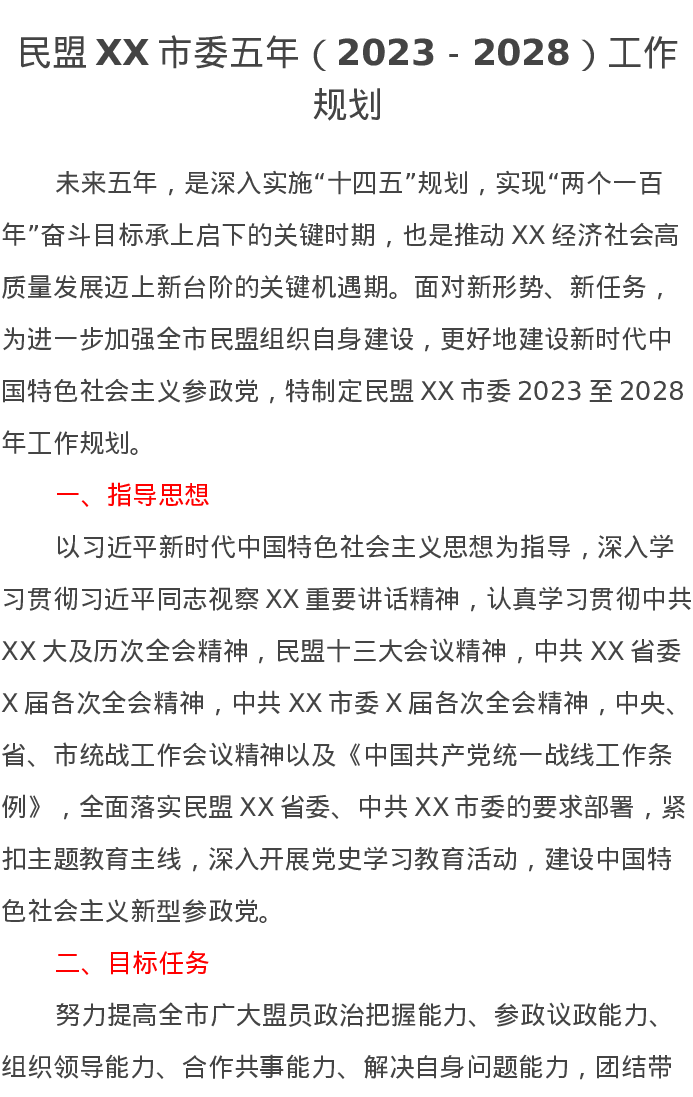 民盟XX市委五年(2023-2028)工作规划