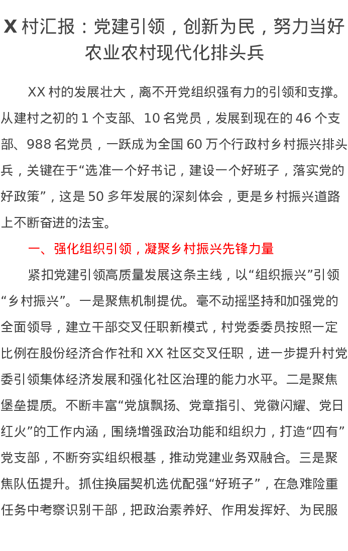 X村汇报:党建引领,创新为民,努力当好农业农村现代化排头兵