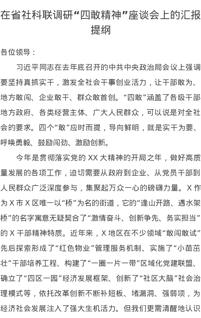 在省社科联调研“四敢精神”座谈会上的汇报提纲