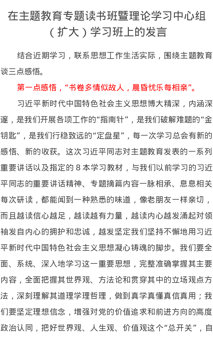 在主题教育专题读书班暨理论学习中心组(扩大)学习班上的发言(特色社会主义思想)